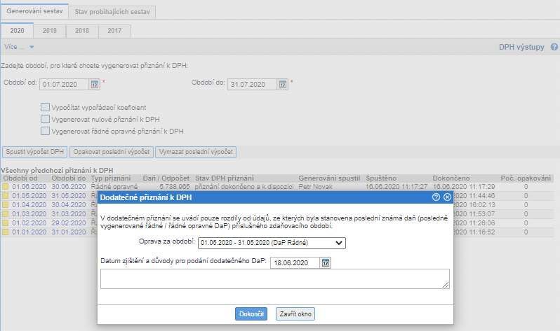 8. Jak vygenerovat opravné nebo dodatečného DPH